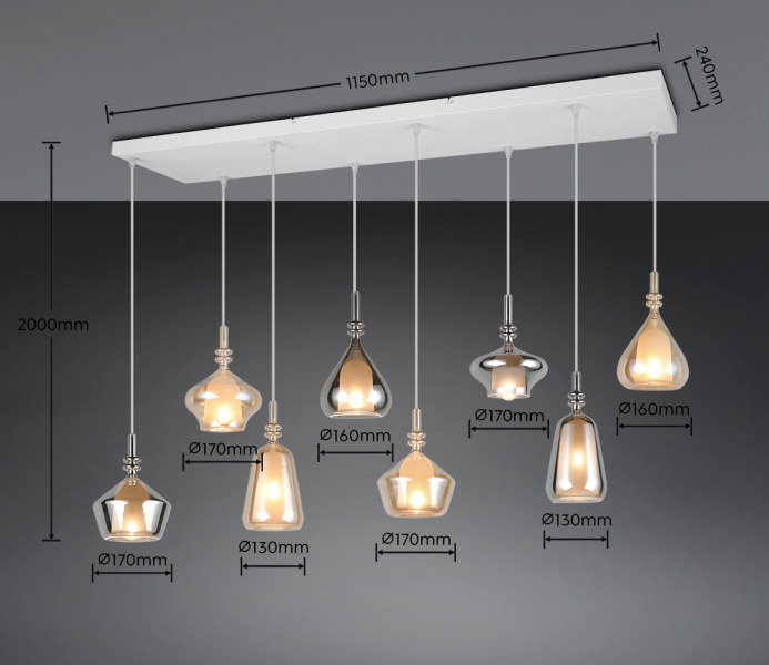 | Valgusallikas: | 8xE14 (ei sisaldu) |