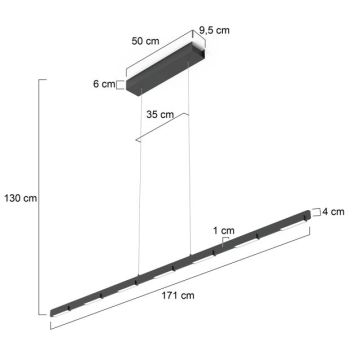 Bloc, ultramoodne praktiline valgusti tööpinna kohale, kööki või kontorisse. 7 valguspunkti alla ja 4 üles.Piisav valgus töötasapinnale ja hubane valgus, mis kumab üle ruumi. Riputuskõrgus on lihtsasti muudetav tänu rullikutel olevatele trossidele. Valgusti suurepärane pikkus 171cm katab ka pikemad töölauad.