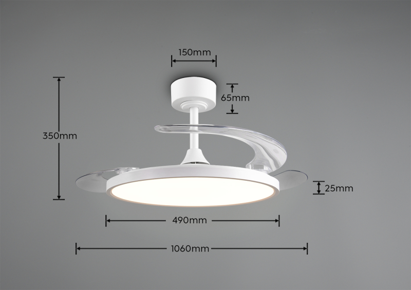 Puldist juhitaval laeventilaatoril on talvine ja suvine režiim. Lisaks on nupule vajutusega võimalik labad kokku pakkida valgusti peale.