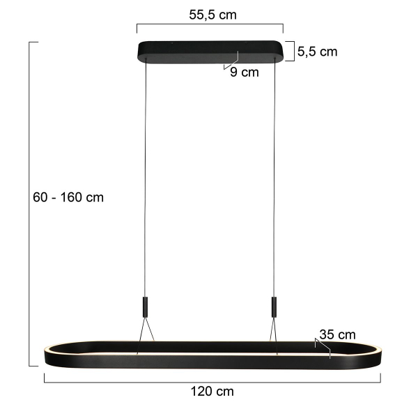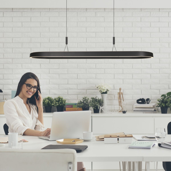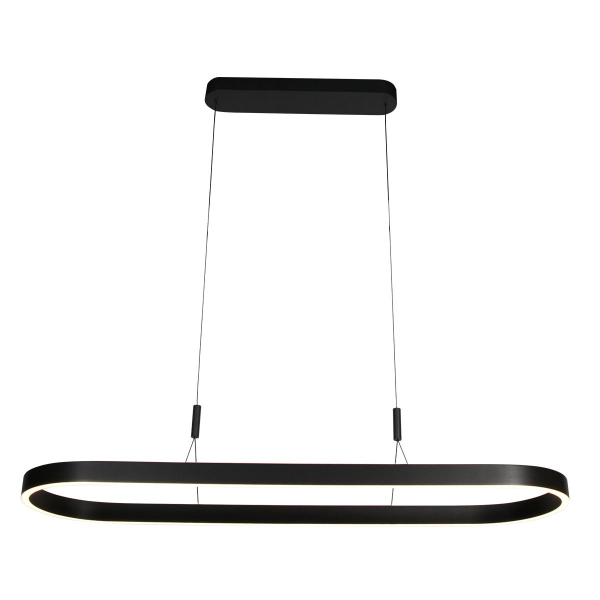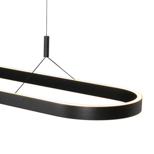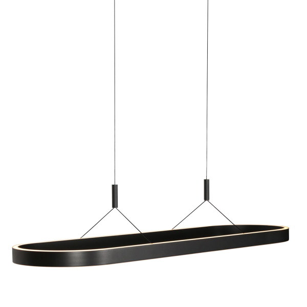 Suure valgustugevusega kvaliteetsest metallist stiilne mattmust ovaalne valgusti. Trossidest lihtsasti üles-alla liigutatav.