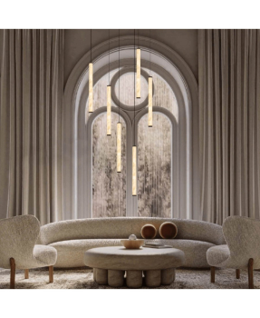 2541 rippvalgusti on luksuslik dekoratiivne LED-valgusti, mis lisab igasse interjööri rafineeritud elegantsi ja soojust. Valmistatud naturaalsest alabastrist ja liivakarva musta viimistlusega alumiiniumist, ühendab see loodusliku materjali eheda ilu ja modernse, puhta disainikeele.