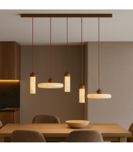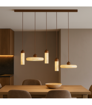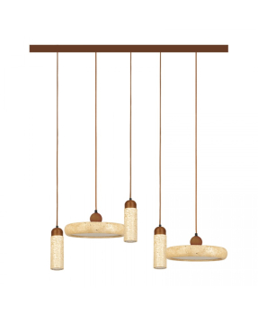 25451 LED-valgustil on viis eraldi valgustit, mis kinnituvad ühele 90 cm pikkusele metallalusele, võimaldades reguleeritavat kõrgust ja ainulaadset valguskompositsiooni. Iga valgusti ühendab looduskivi peenete pruuni puiduaktsentidega, luues eristuva materjalide ja disaini segu, mis tõstab iga interjööri esile. Valgustil on 44 W LED-valgusti ja kolm GU10 lambipesa kuni 10 W pirni kohta (ei kuulu komplekti), soe 3000 K valgus ja CRi 80 ühtlase ja mugava valgustuse tagamiseks. 200 cm pikkused reguleeritavad kangast kaablid võimaldavad isikupärastatud kõrguse seadistamist, samas kui vastupidav metallalus tagab stabiilsuse ja stiili. Looduskivi ja puiduelementidega valgusti sobib ideaalselt maalähedastesse kodudesse ning igasse ruumi, mis soovib esile tuua ainulaadset iseloomu ja sooja õhkkonda.