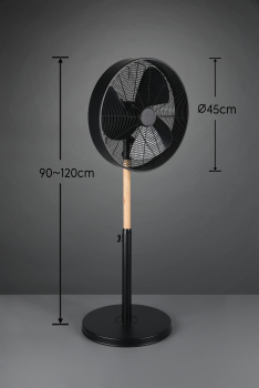 Kolme kiiruse seadistusega moodne VIKINGi põrandaventilaator mitte ainult ei paku jahedat õhku, vaid näeb ka stiilne välja! Olgu see siis kontoris, magamistoas või elutoas, moodne disain sobib suurepäraselt moodsa sisustusstiiliga. 90 cm kõrgusel ventilaatoril on automaatne pöörlemismehhanism, mis tagab ideaalse õhujaotuse isegi külmal aastaajal. Puiduvärvi element rõhutab veelgi muidu mattmusta ventilaatori välimust.
