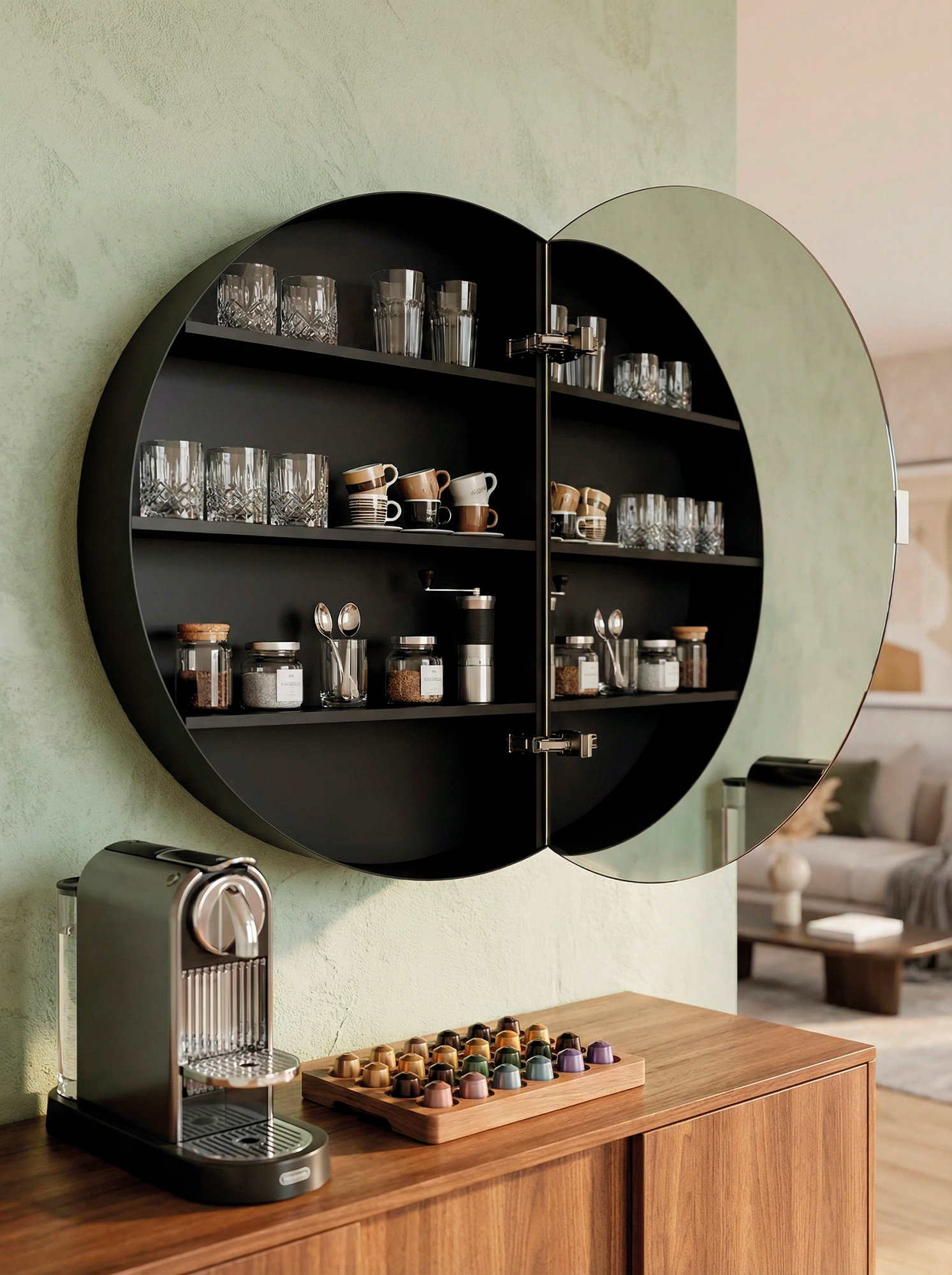 - Ümmargune peegel lisab pehmust